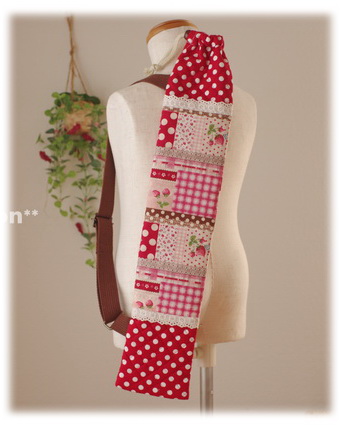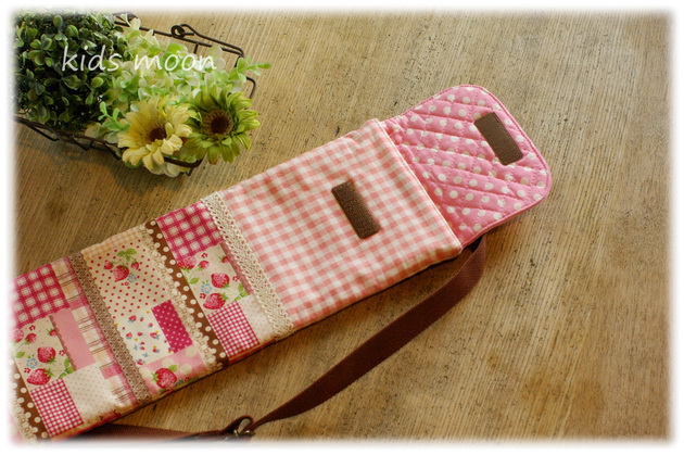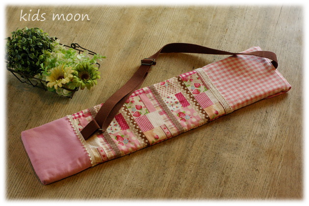 【オーダー例】45cmバトン用・ピンク 肩紐の長さは調節できます。 肩紐を短くすると、片方の肩にかけて使用できます。 【オーダー例】新体操用リボンケース・ピンク