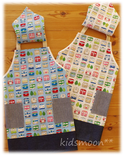 小さなお子様が自分で着られるように、ゴムとマジックテープを使いました。