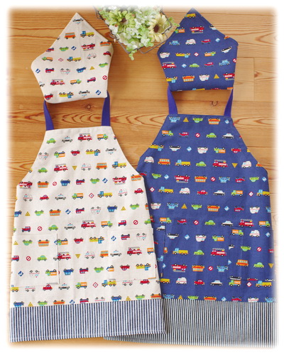 小さなお子様が自分で着られるように、ゴムとマジックテープを使いました。